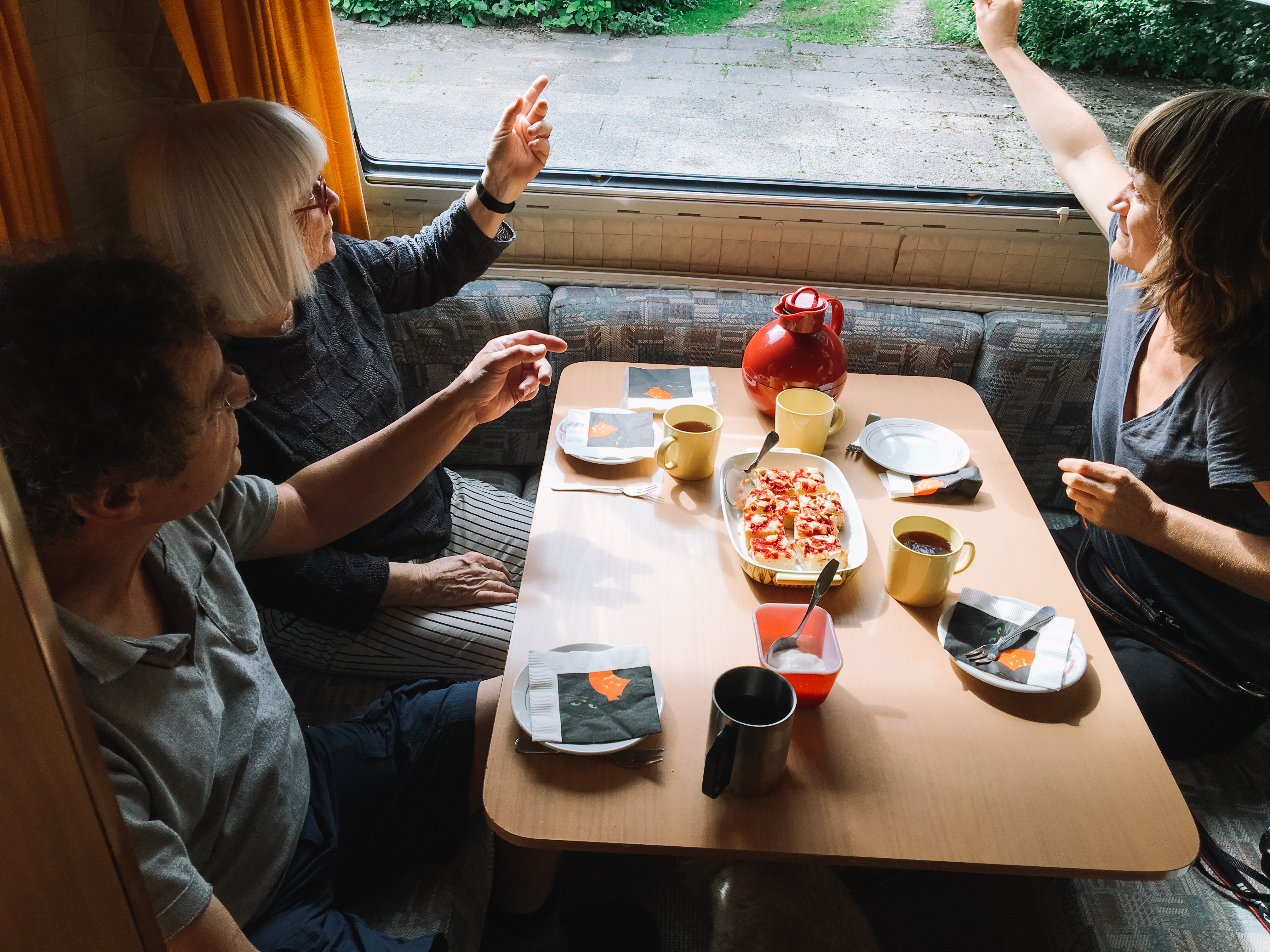 노란 등이 길게 늘어뜨려진 거실 테이블에 따뜻한 차와 쿠키, 남편인 옌스가 직접 구운 빵과 버터를 내주었지요.